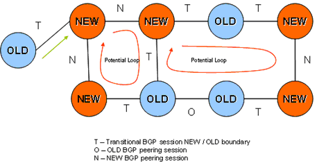 Figure 6 – NEW-> OLD-> NEW Transition with Potential Routing Loops