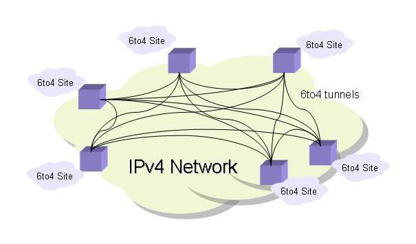 This allows the point-to-multipoint tunnel overlay to form. Any IPv6 traffic from a 6to4 site to any other 6to4 site can be sent directly from 6to4 gateway to 6to4 gateway via a 6to4 tunnel without the assistance of any relays or intermediate IPv6 routing. In essence 6to4 treats the entire IPv4 network as a non-broadcast multi-access network.