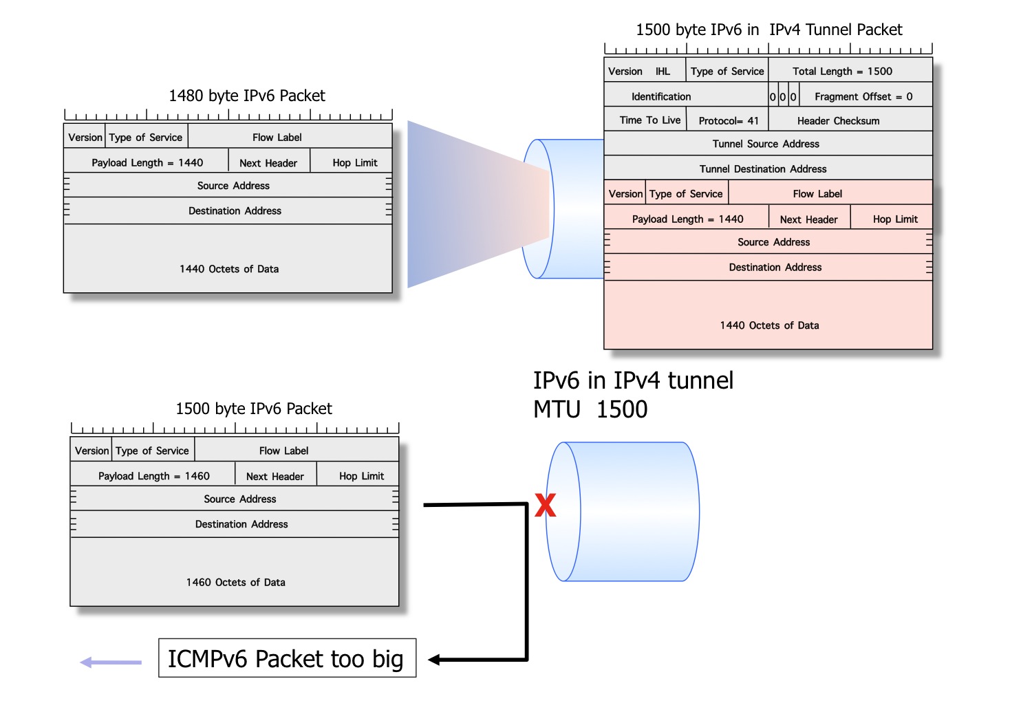 But there is one rather critical difference, and that is the deliberate change in the IPv6 with respect to MTU handling and packet fragmentation, and this relatively minor change in IPv6 has some really quite critical implications. In this article I'd like to illustrate some of the implications of this change with respect to the IPv6 treatment of packet fragmentation by taking an in-depth look at the IPv6 packet flows and why and how this change to packet fragmentation management can cause service-level disruption.