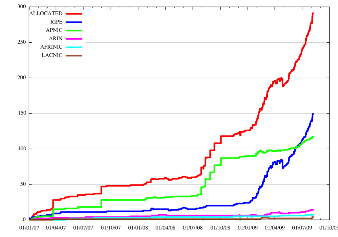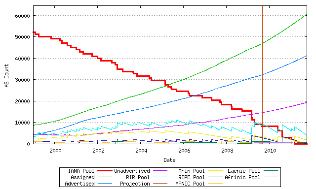 So the question of the moment is that if we've managed to get through 46,988 AS numbers in August 2009, how long will the remaining pool of unallocated 16-bit AS numbers last?