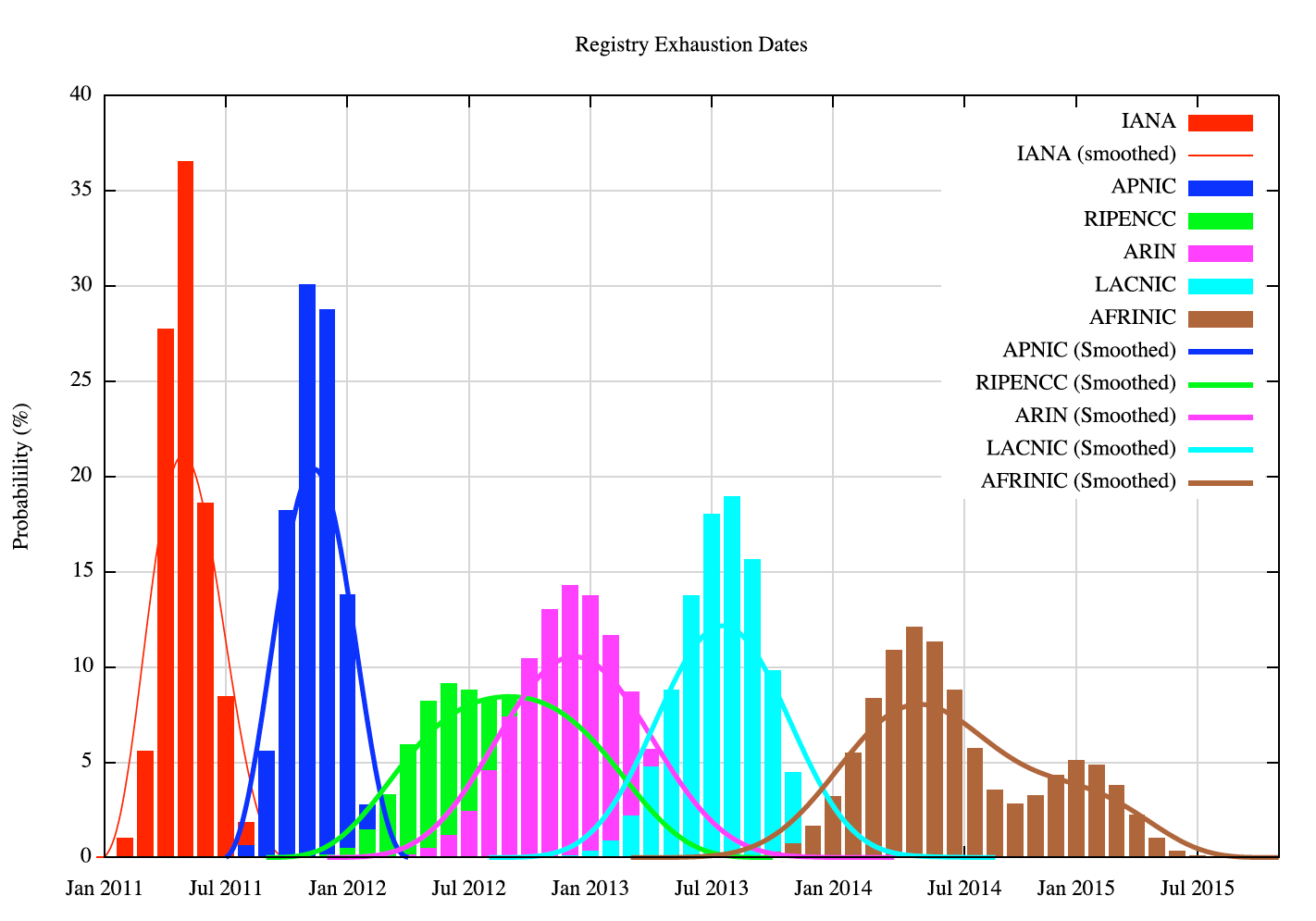 IANA Exhaustion: May 2011 Mean Standard Deviation: 1 Month, 5 days