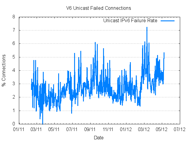 Figure 5 – IPv6 Unicast Connection Failure Rates