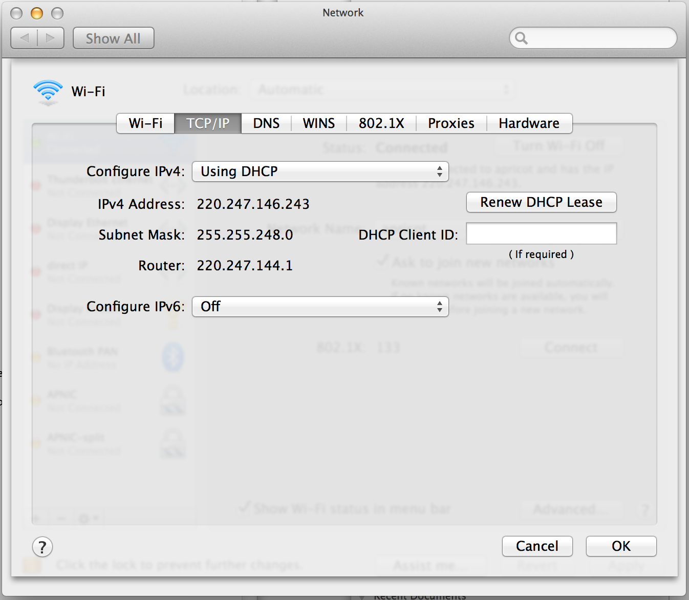 # networksetup -setv6off Wi-Fi