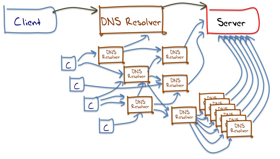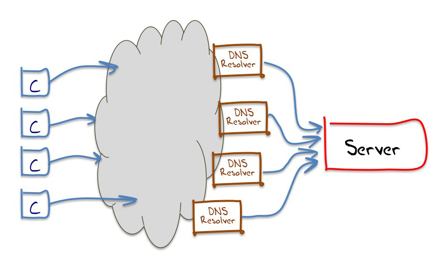 The simplest conceptual model of DNS resolution involving a client, a DNS resolver and a collection of authoritative name servers, as shown in Figure 2.