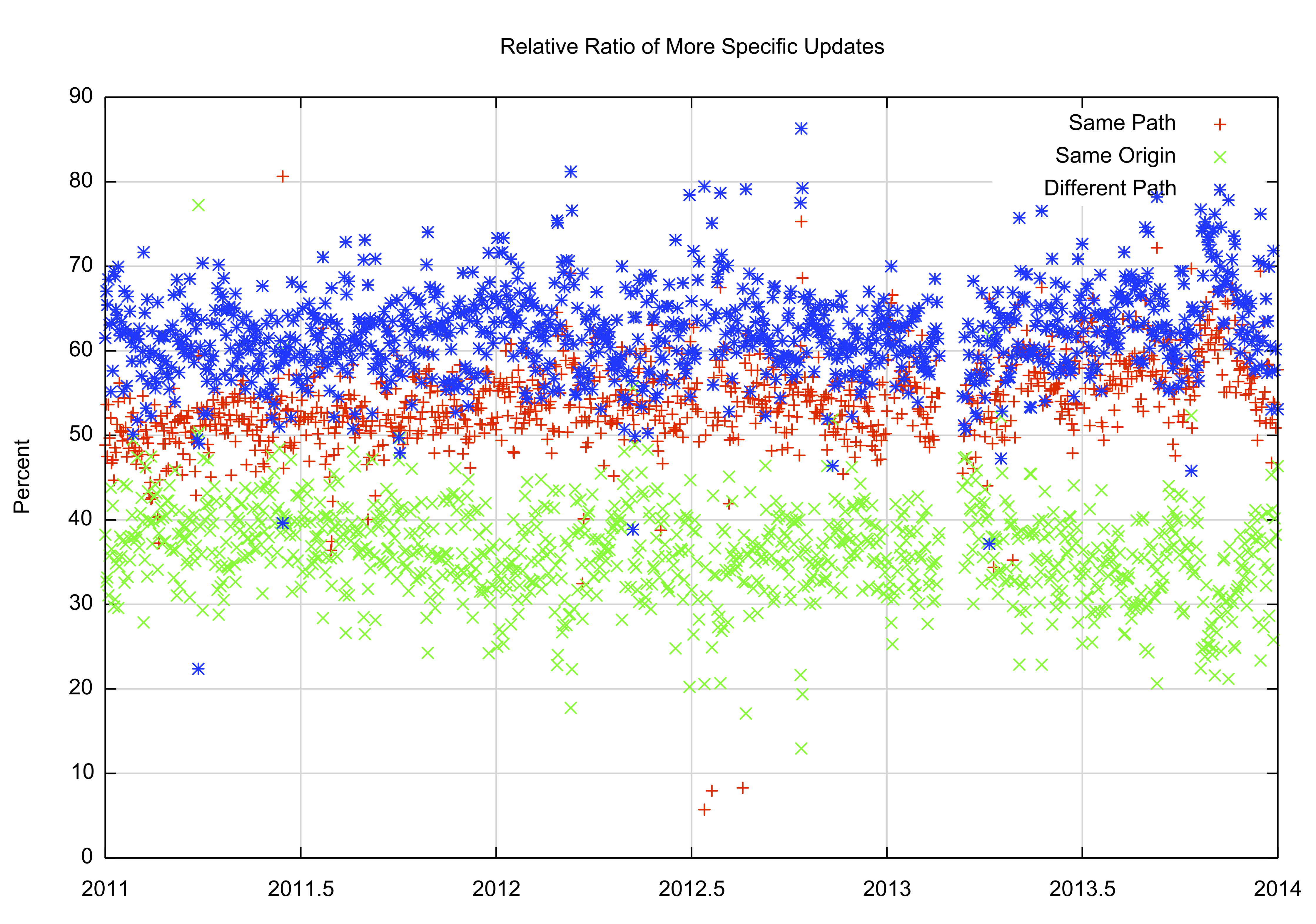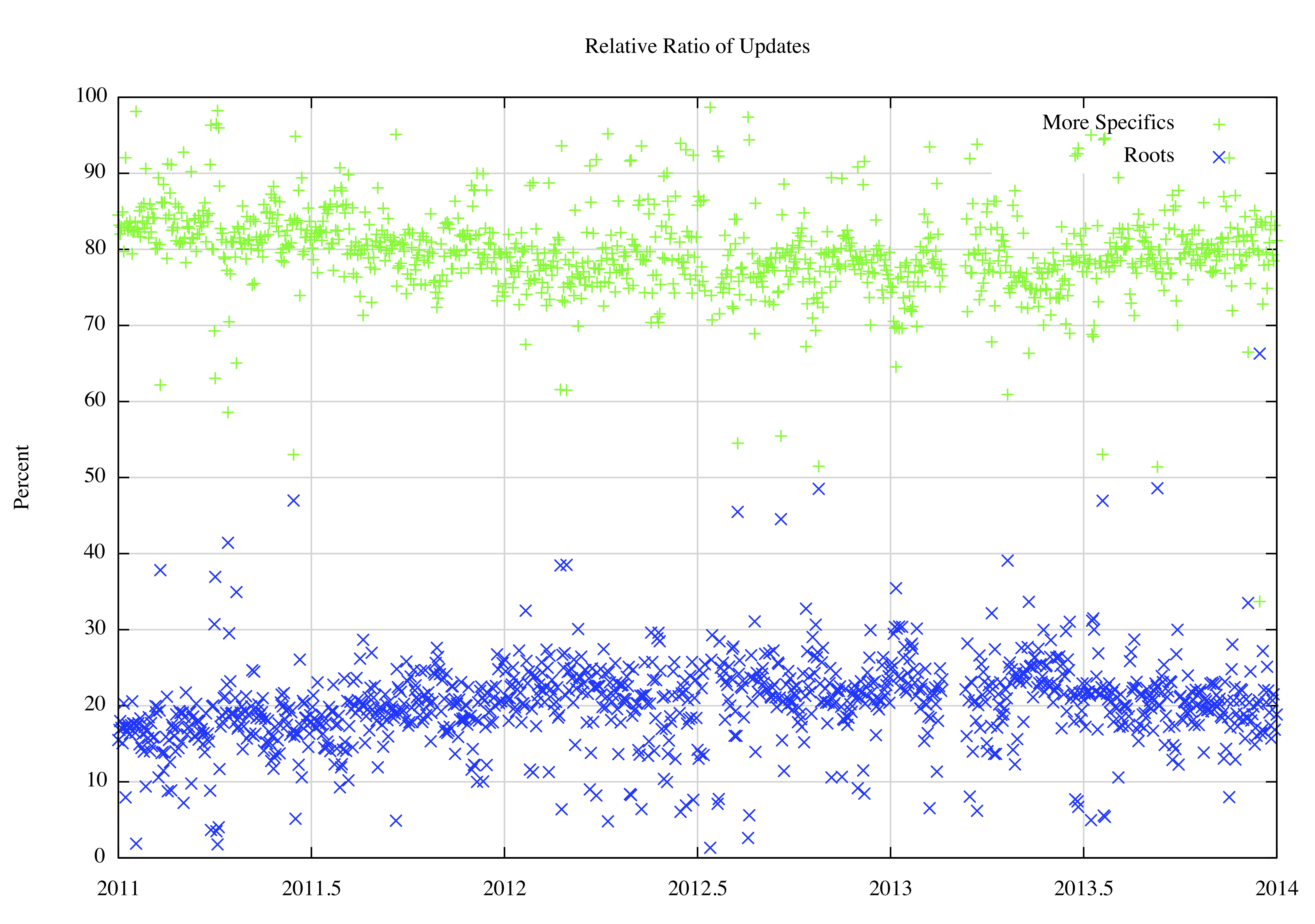 Figure 17 – Relative Proportion of Updates between More Specifics: 2011 - 2014