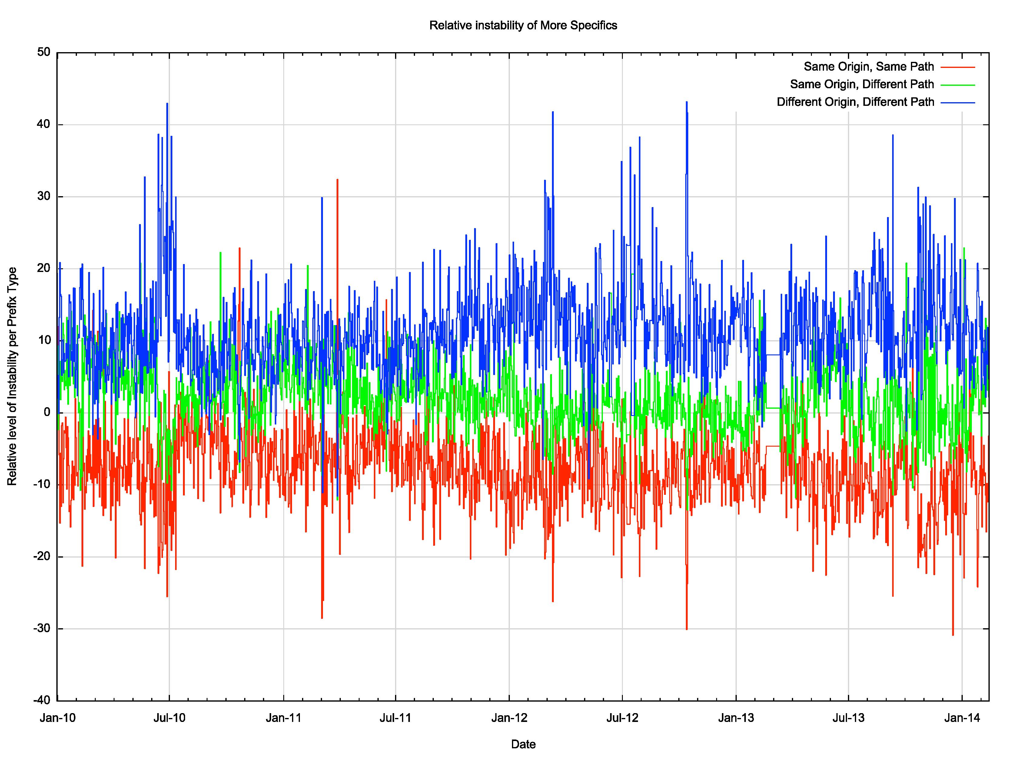 Figure 18 – Relative Instability of different types of More Specifics: 2010 – 2014