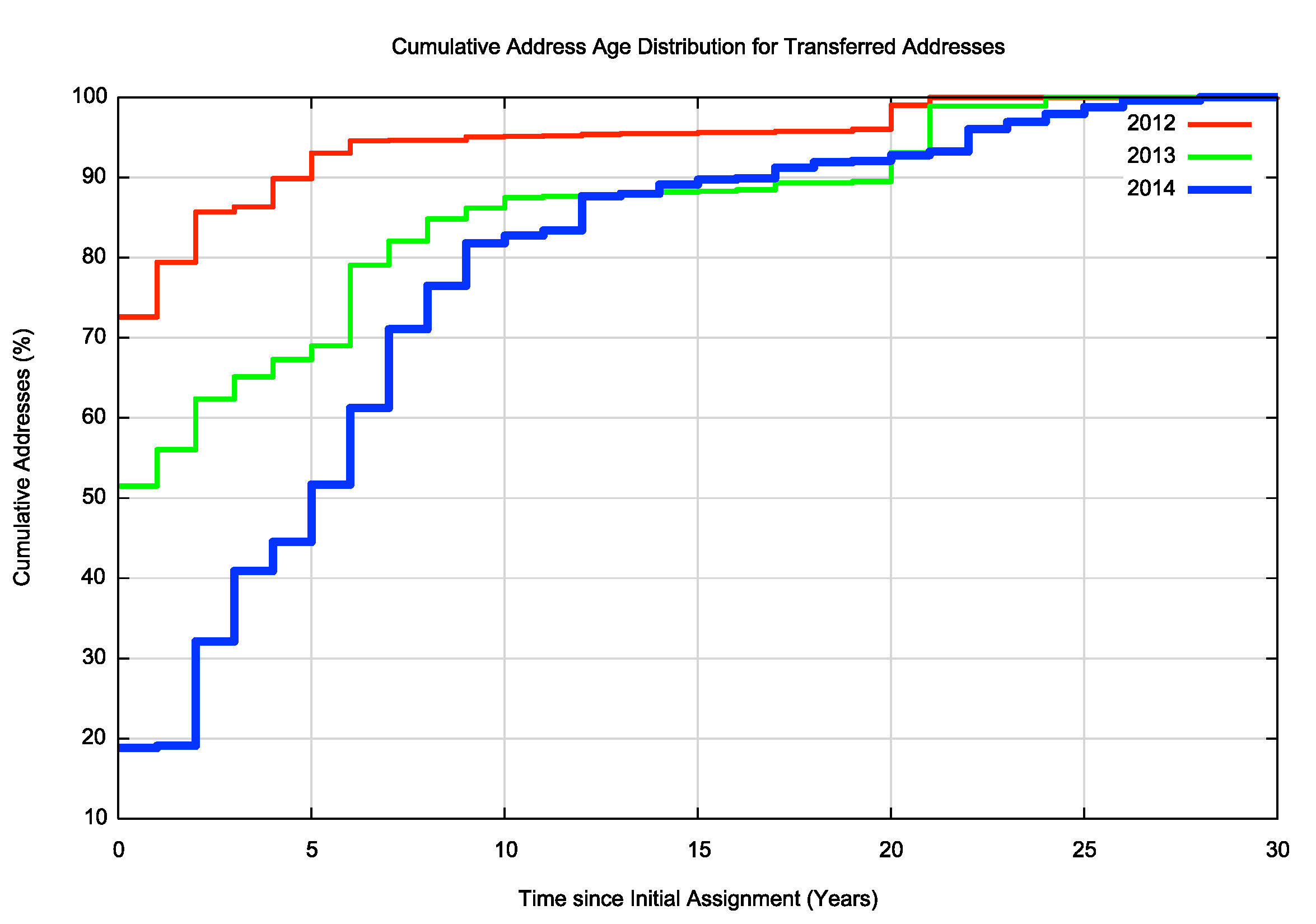 Figure 4 – Cumulative Age Distribution of Registered Address Transfers per year