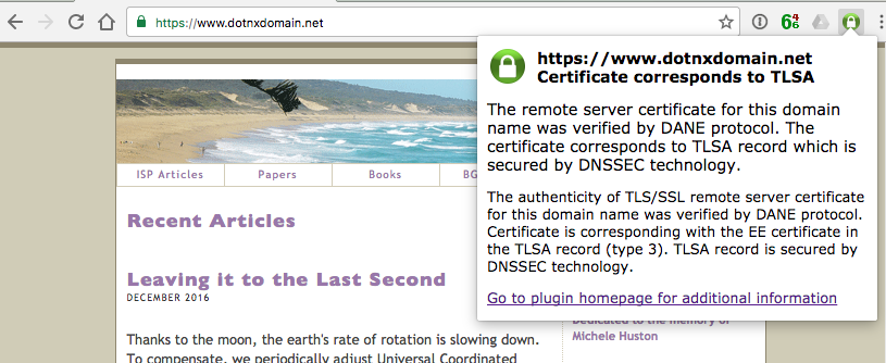 I’ve added the DANE validation tool published by CZ.NIC to my browser.