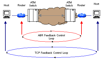 It is interesting to note the observations published by Jagannath and Yin [1], which suggest that "it is not sufficient to have a lossless ATM subnetwork from the end-to-end performance point of view," especially in the case of ABR services. This observation is due to the fact that two distinct control loops exist -- ABR and TCP [Figure 3]. Although it generally is agreed that ABR can effectively control the congestion in the ATM network, ABR flow control simply pushes the congestion to the edges of the network (i.e., the routers), where performance degradation or packet loss may occur as a result. Jagannath and Yin also point out that "one may argue that the reduction in buffer requirements in the ATM switch by using ABR flow control may be at the expense of an increase in buffer requirements at the edge device (e.g., ATM router interface, legacy LAN to ATM switches)." Because most applications use the flow control provided by TCP, one might question the benefit of using ABR flow control at the subnetwork layer, because UBR (albeit with Early Packet Discard) is equally effective and much less complex. ABR flow control also may result in longer feedback delay for TCP control mechanisms, and this ultimately exacerbates the overall congestion problem in the network.