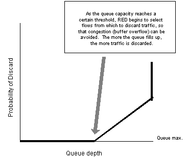 The RED approach does not possess the same undesirable overhead characteristics as some non-FIFO (First In, First Out) queuing techniques (e.g., simple priority queuing, class based queuing, weighted fair queuing). With RED, it is simply a matter of who gets into the queue in the first place -- no packet reordering or queue management takes place. When packets are placed into the outbound queue, they are transmitted in the order in which they are queued. Queue-based scheduling mechanisms, such as priority, class-based, and weighted-fair queuing, however, require a significant amount of computational overhead due to packet reordering and queue management. RED requires much less overhead than these non-FIFO queuing mechanisms, but then again, RED performs a completely different function.