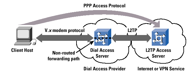 With L2TP in a "compulsory" tunneling implementation, the service provider controls where the PPP session is terminated. This setup can be extremely important in situations where the service provider to whom the subscriber is actually dialing into (let"s call it the "modem pool provider" network) must transparently hand off the subscriber"s PPP session to another network (let"s call this network the "content pro-vider"). To the subscriber, it appears as though the local system is directly attached to the content provider"s network, when in fact the access path has been passed transparently through the modem pool provider"s network to the subscribed content service. Very large content providers, for instance, may outsource the provisioning and maintenance of thousands of modem ports to a third-party access provider, who in turn agrees to transparently pass the subscribers" access sessions back to the content provider. This setup is generally called "wholesale dial." The major motivation for such L2TP-based wholesale dial lies in the typical architecture of the Public Switched Telephone Network (PSTN), where the use of wholesale dial facilities can create a more rational PSTN call load pattern with Internet access PSTN calls terminated in the local Central Office.