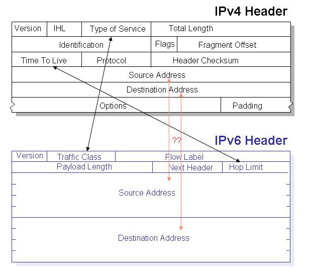 Even though IPv6 was designed to be a successor protocol to IPv4, its not a backward compatible technology. IPv6 doesn’t just push the address size out from 32 to 128 bits in length, but also a uses completely different set of packet header fields and a packet header design, and the result is incompatible. An instance of the IPv6 protocol cannot receive an IPv4 packet header and make any sense of it. Similarly, an IPv6 protocol stack cannot generate a form of IPv6 packet header that would make sense to an IPv4 protocol instance. They are different and incompatible protocols, and while the two protocols can coexist on the same network, they simply cannot interoperate. While most of the IPv4 header fields can be mapped into either the equivalent IPv6 field or some form of extension header in one fashion or another, the problem comes when attempting to map the source and destination address values between the two protocols.